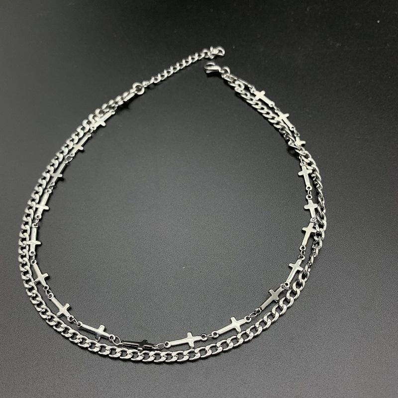 チェーンクロスネックレス チョーカー 送料無料 チェーン 二重 チョーカー クロス ネックレス 十字架